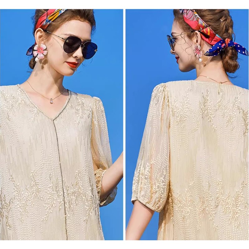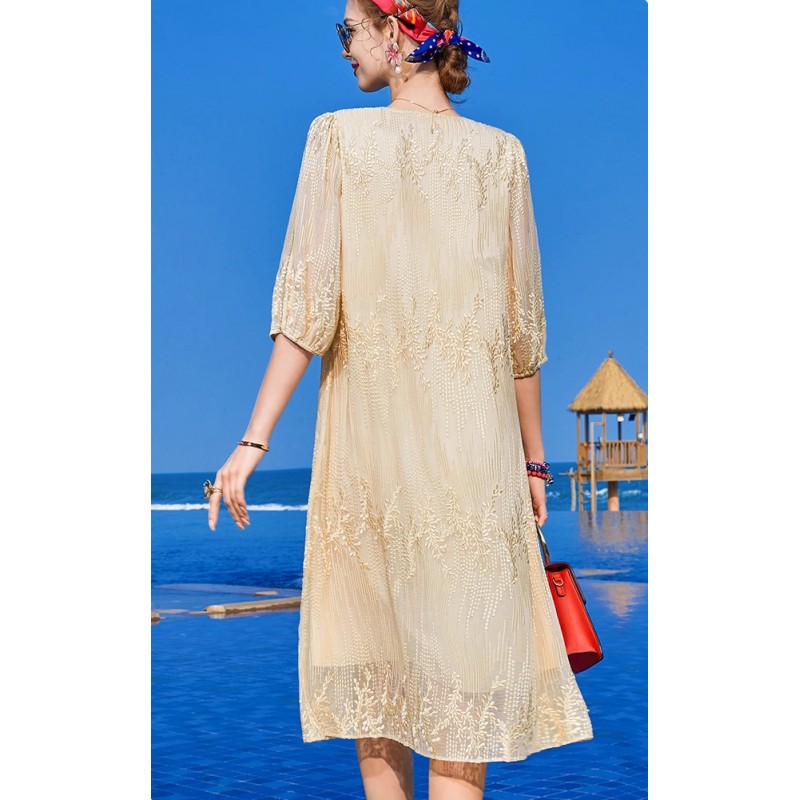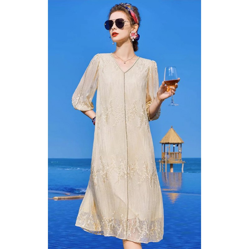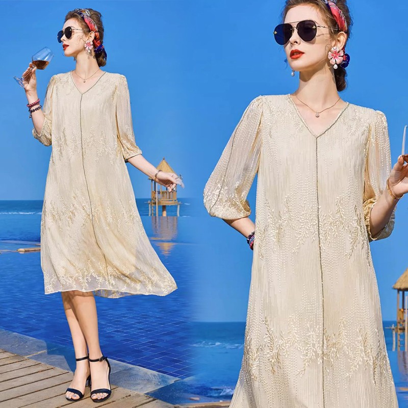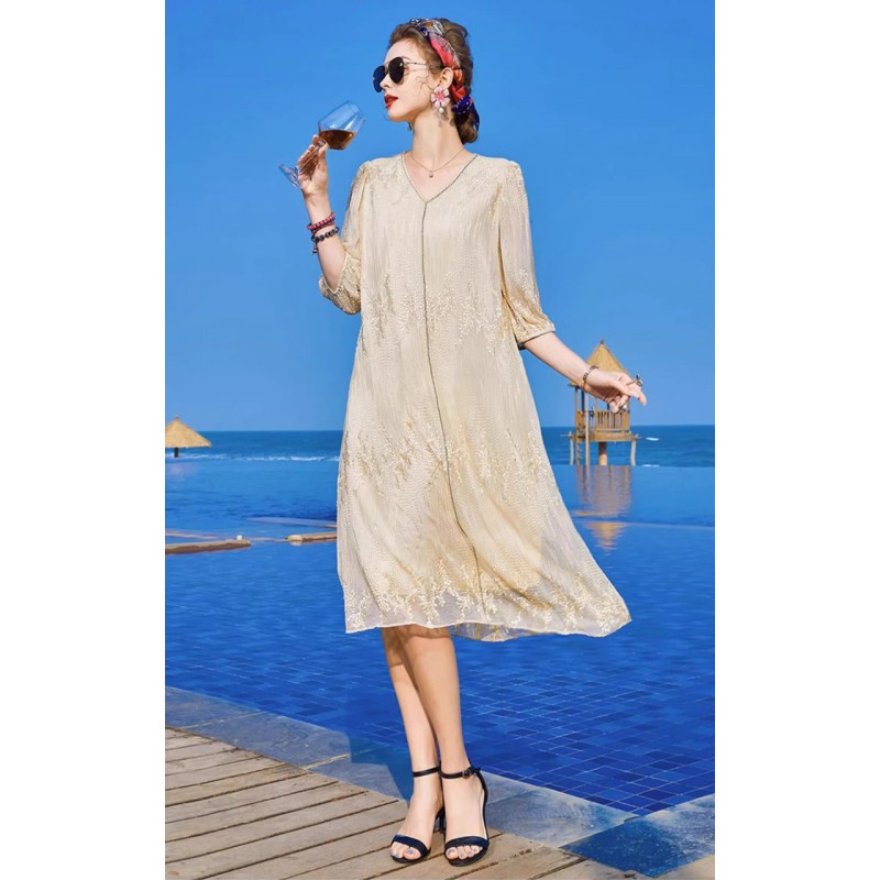 Beautiful silk fabric maternity formal dress 3/4 sleeve, it is also suitable to wear after the pregnancy.