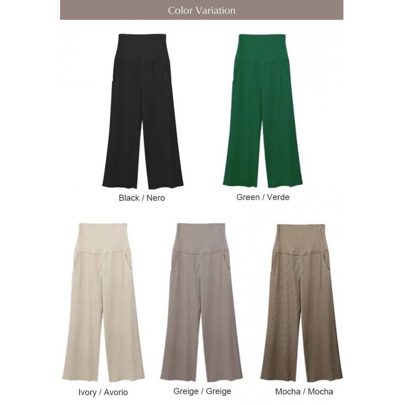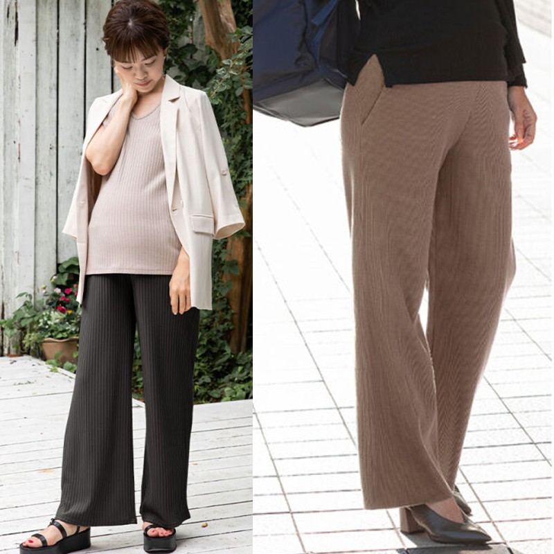 Soft maternity palazzo pants with wide leg and adjustable length, very comfortable.