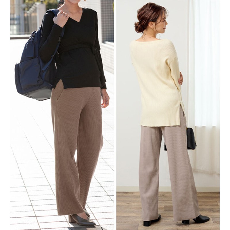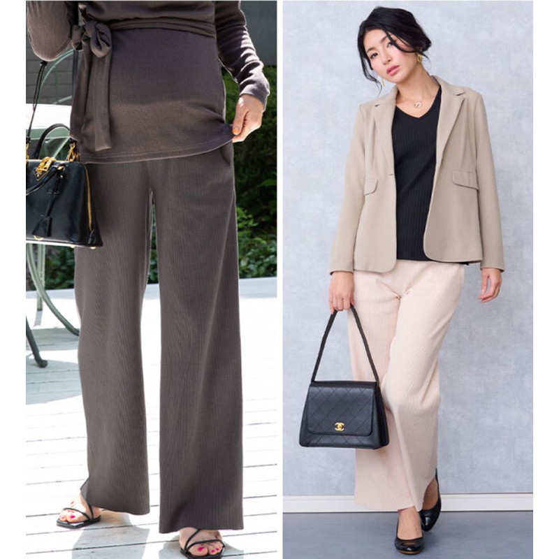 Very soft wide leg maternity cotton trousers with adjustable length