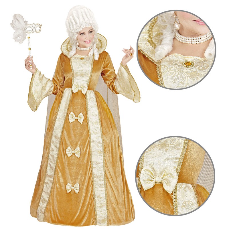 Costume de carnaval pour femmes, déguisement de noble dame vénitienne. Le costume comprend: robe avec jupon crinoline et cape.