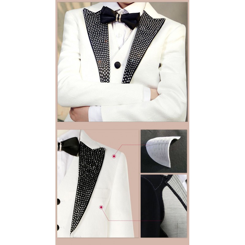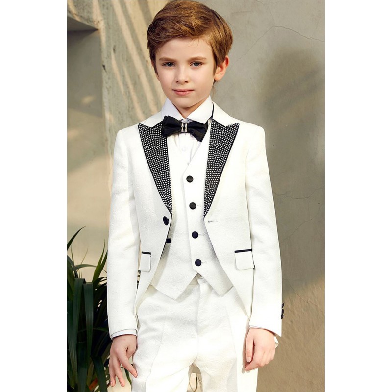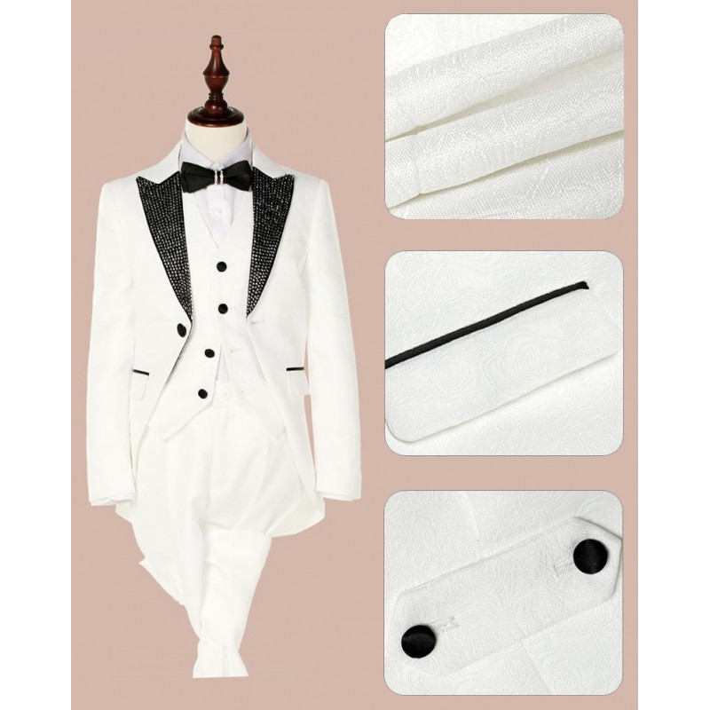 Elegante completo bambino / ragazzo, stile smoking francese, formato da 5 pz, tessuto jacquard, perfetto per una cerimonia o un'occasione importante.