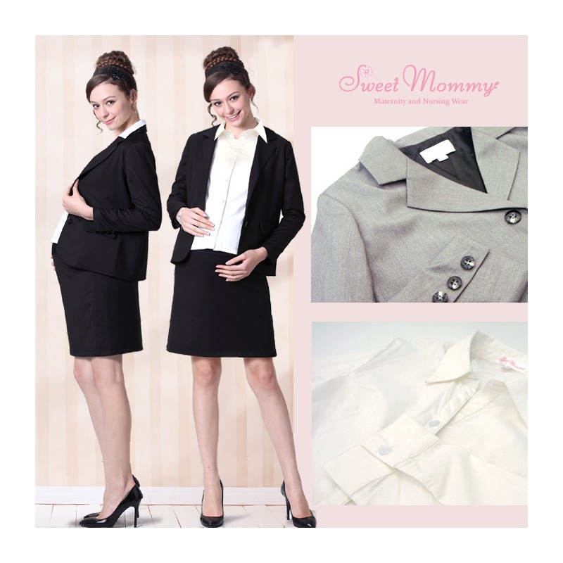 Meraviglioso completo premaman / allattamento 3 pezzi: giacca, gonna, camicia. Rifiniture di alta qualità.