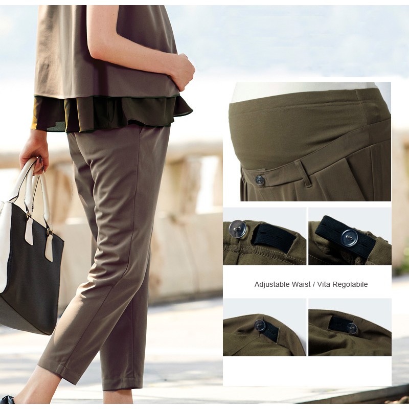 Il pantalone è a vita regolabile e vi garantisce il massimo confort in qualsiasi momento della gravidanza.