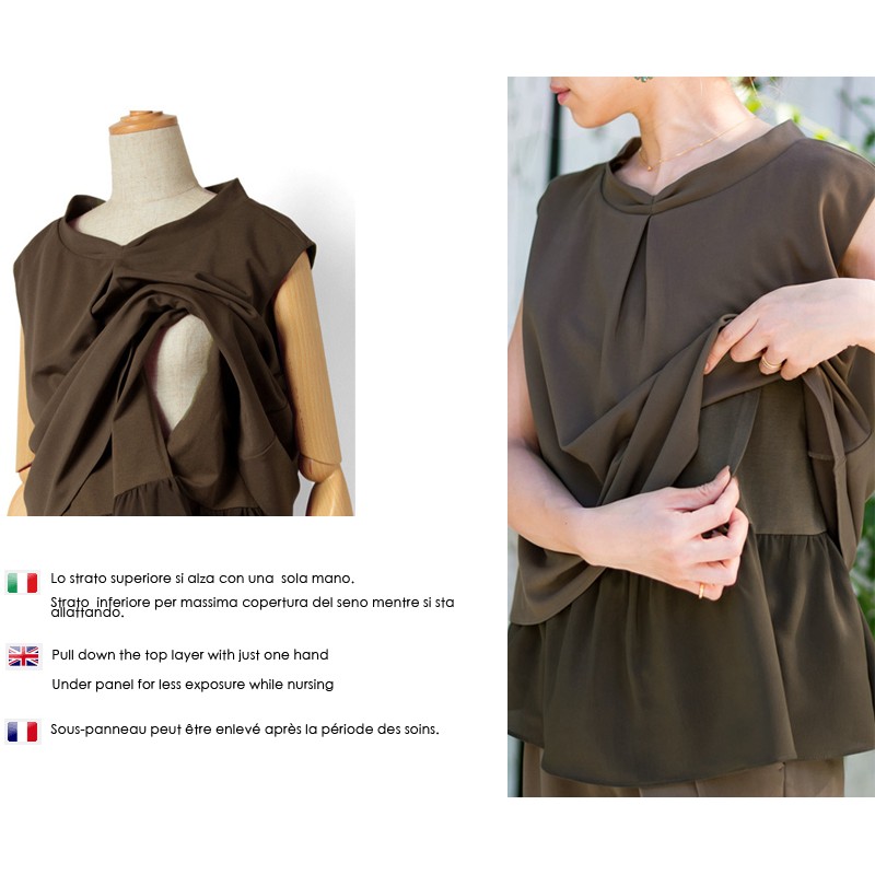 Per l'allattamento questo top ha una speciale apertura nascosta che vi assicura la massima discrezione anche quando dovete allattare in un luogo pubblico.